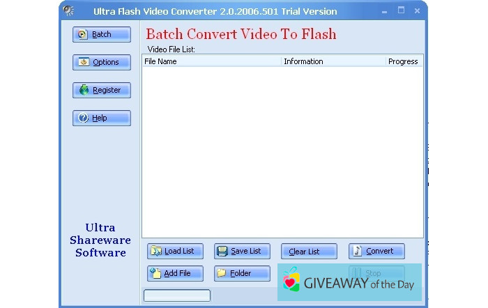 The free Ultra Video To Flash Converter 2.0 download is available on our website. It can be installed on Windows XP/Vista/7 32-bit. The copyright holder of this program is Utralshareware Software.