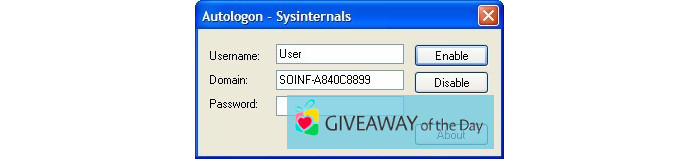Download free AutoLogon 9.1.5 on our software library. The software is related to System Utilities, according to its main functionality. The software is designed to work with Windows XP/7/8 32-bit. The copyright of the software belongs to Mark Russinovich.