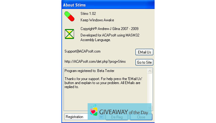 The free Stims 1.020 download is available on our website. The program has been scanned by our built-in antivirus system, the analysis shows that Stims is 100% secure. It is related to System Utilities, according to its main purpose. The most popular version of the software is 1.0. The copyright of the software belongs to ACAPsoft. The most common names of installation files for this tool that can be found on our database are: Stims.exe and stims_gui.exe, etc. The minimum amount of storage to set up the file is 26 KB.