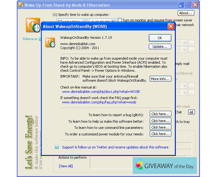 A free version of WakeupOnStandBy 1.7.20.6 can be found on our website. According to the user opinions, WakeupOnStandBy features such a plus as WakeupOnStandBy is reliable. This program is categorized as System Utilities, according to its main purpose.