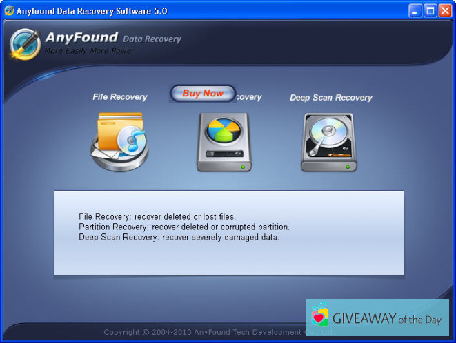 Users write reviews pointing out that the strong side of it is: it has a nice interface. Our users often look for the installation file for this software with the following name: AnyFoundDataRecovery.exe.