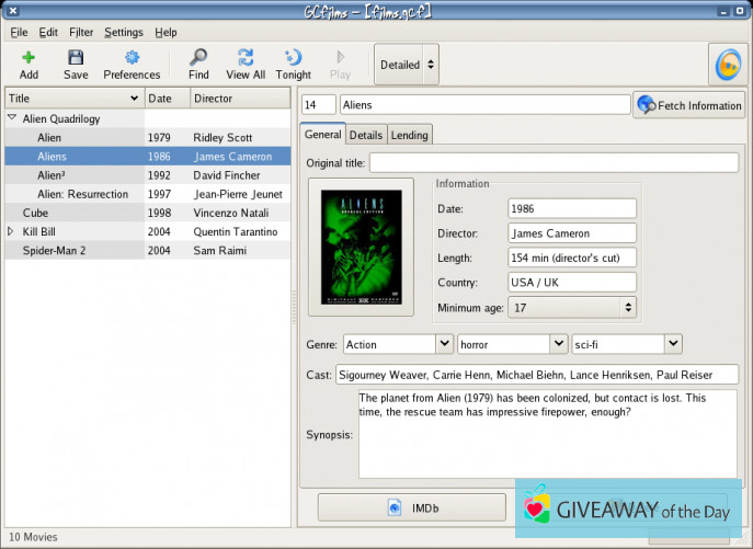 Our website provides GCfilms 6.4 that can be downloaded for free. The most popular version of the program is 6.4. The fact that Tian is the creator of this program is well-known by its users. It is categorized as Lifestyle, according to its main purpose. The software has been checked by our built-in antivirus system, the report indicates that it is secure. Users write reviews saying that the advantages of this program are: this program is reliable and is efficient.