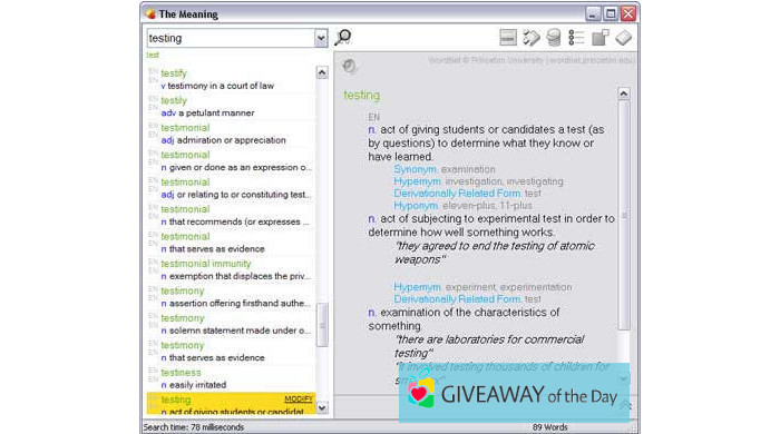 Our antivirus system always checks the downloadable files for spyware. It scanned the software and reported that it is 100% secure. According to the system requirements, The Meaning is available for the following OSs: Windows XP/7/8 32-bit. The most popular versions of the program are 2.0 and 1.0.