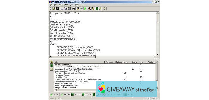 Some users have noticed that the significant benefit of SQL Batch Executor is: it is very easy to use. JohnMacIntyre.ca is the developer of this program. The most popular version of the tool that our community members choose is 1.0. The program has been checked by our built-in antivirus system, the report displays that this program is safe.