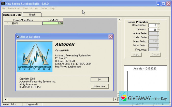 Our antivirus system always scans the software for spyware. It scanned the software and reported that it is 100% secure. Automatic Forecasting Systems is the creator of the software. According to the system requirements, the software supports the following OSs: Windows Vista/7/8 32-bit. Autobox is a software product which is commonly known as autobox.exe.