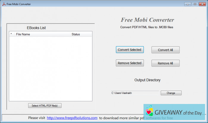 Download free Free Mobi Converter 1.0 on our website. Please note that this tool is developed by Free PDF Solutions. According to the information on our software library the most popular version of this software is: 1.0.