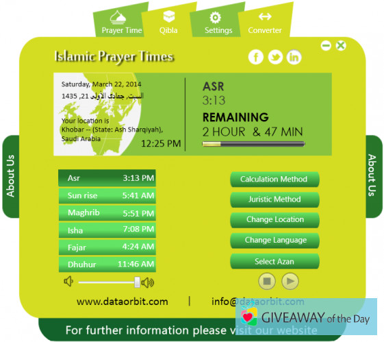 Islamic Prayer Times 1.0.0 is available for free on Download Basket. The fact that Data Orbit is the developer of the software is well-known by its users. You can find it in the Lifestyle category on our software library.