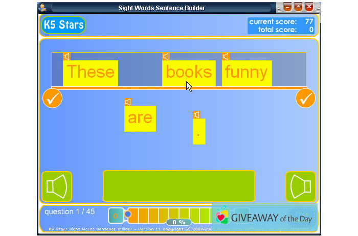 Our website provides Sight Words Sentence Builder 1.1 that can be downloaded for free. You can find it in the Lifestyle category on our software library. According to the system requirements, the software is available for the following OSs: Windows XP/Vista/7/8/10 32-bit.