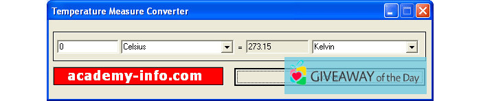 The free Temperature Converter 2.0 download is provided on our software library. You can find this tool in the Lifestyle category on our website. The copyright holder of Temperature Converter is academy-info.com. This program can be installed on Windows XP/Vista/7/8/10 32-bit.