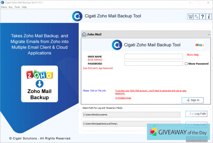 Cigati Zoho Mail Backup Tool 23.5 is available for free on our software library. The downloadable file requires 154.9 MB on your hard drive. The copyright of it belongs to Cigati Solutions. The built-in antivirus system reports that the software is secure. Cigati Zoho Mail Backup Tool is included in Communication, according to its main functionality.