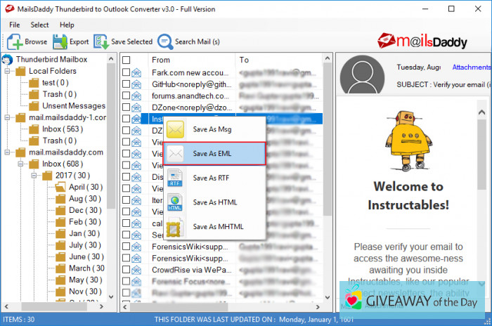 The free MailsDaddy Thunderbird to Outlook Converter 4.0 download is available on our software library. If you have 7.7 MB of free space on your hard drive, you can easily download the latest version of it. It is related to Communication, according to its main functionality. The built-in antivirus system shows that the software is safe. The fact that MailsDaddy is the creator of this program is well-known by its users.