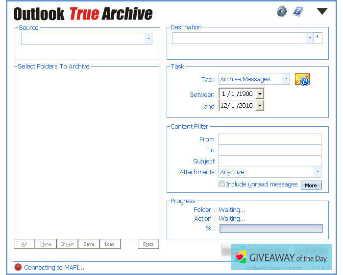 The free Outlook True Archive 1.4 download is provided on our software library. HEC is the creator of it. The built-in antivirus system indicates that the downloadable file is safe. According to the information on our website the most popular versions of this tool are: 1.4, 1.3 and 1.2.