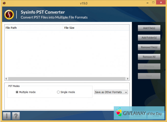 A free version of Sysinfo PST Converter 23.3 can be found on our software library. The built-in antivirus system shows that the downloadable file is virus free. The software is found among Communication, according to its main purpose. The fact that SysInfoTools Software is the developer of this tool is well-known by its users. The downloadable file of this latest software version requires 199.7 MB of free space.