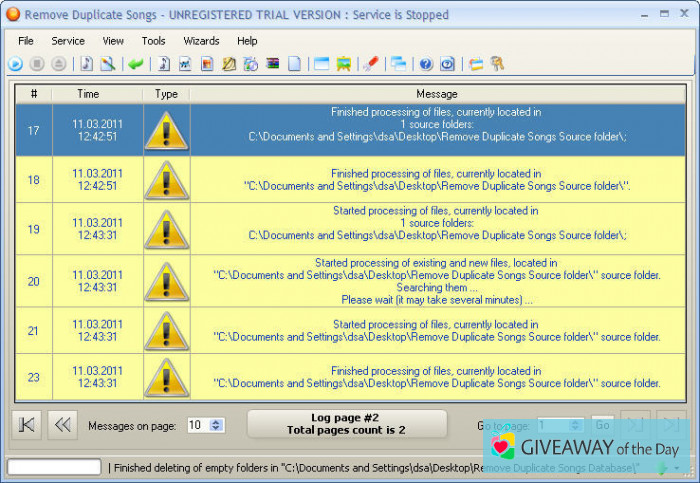 Our website provides Remove Duplicate Songs 7.39.82.416 that can be downloaded for free. The most popular version of the tool is 7.3. Notice that this tool can be launched on the following OSs: Windows XP/Vista/7/8 32-bit.