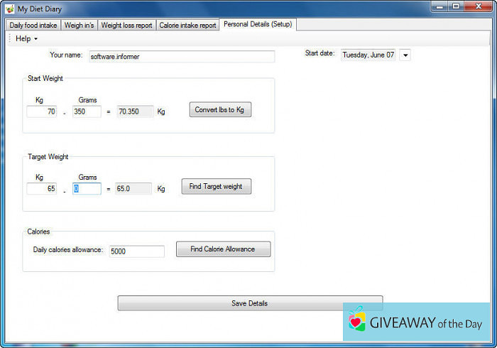 The copyright holder of this tool is Julie Stone. This software has been scanned by our built-in antivirus system, the analysis indicates that this tool is 100% secure. The most popular and frequently downloaded file of this software is: My Diet Diary.exe. You can find this program in the Lifestyle category on our website. This tool is designed to work with Windows XP/Vista/7/8 32-bit.