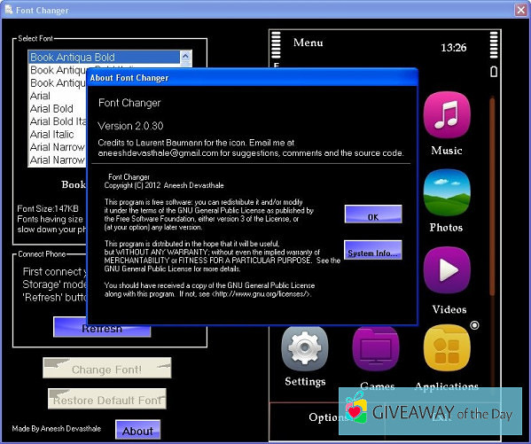 The most popular and frequently downloaded file of the program is: Font_changer.exe. The most popular versions of this tool that our community members download are 5.0 and 2.0. Our antivirus system always scans the software for spyware. It scanned this tool and reported that it is 100% secure. Please note that this tool is created by Aneesh Devasthale.