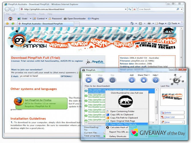 A free version of PimpFish Basic 2006.3 can be found on our website. The software has been scanned by our built-in antivirus system, the report displays that the software is virus free. The fact that Zabersoft inc. is the creator of it is well-known by its users.