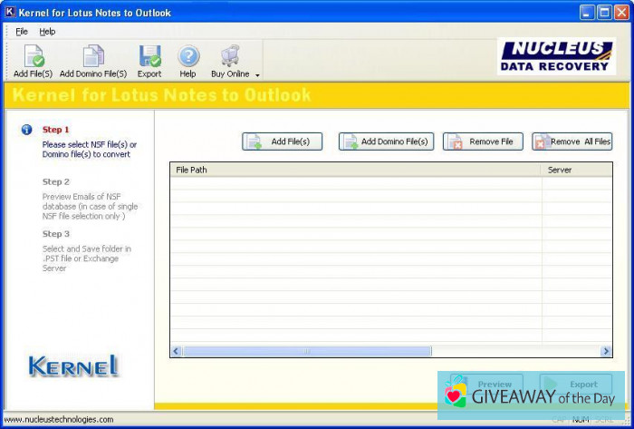 The most widespread installation file names of this program are Kernel Initialize Application.exe and Kernel Initlize Application.exe etc. Our antivirus system always scans the software for malware. It scanned this tool and reported that it is clean to use. Sometimes, this program can be referred to as "Kernel for Lotus Notes to Outlook Evaluation ver". This tool is designed to work with Windows XP/XP Professional/Vista/7 32-bit. The copyright holder of this program is Nucleus Data Recovery.com.