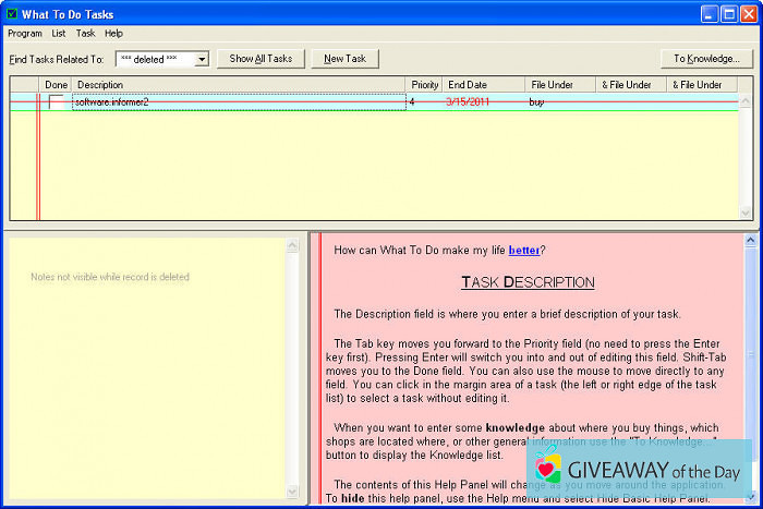 As users indicate, the advantages of the software are: the software has an easy interface and is easy to install. Many users note that the weak point of the software is: it is hard to use. Please note that What To Do is created by Handcrafted Bytes. The software has been checked by our built-in antivirus system, the analysis displays that this program is absolutely safe. According to the information on our website the most popular version of the tool is: 1.0.