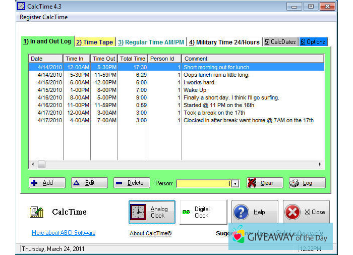 CalcTime 5.2.40 is provided for free on our software library. Please note that this tool is developed by Access Business Communications, Inc. The downloadable file has been checked by our built-in antivirus system, the analysis shows that this program is absolutely safe.