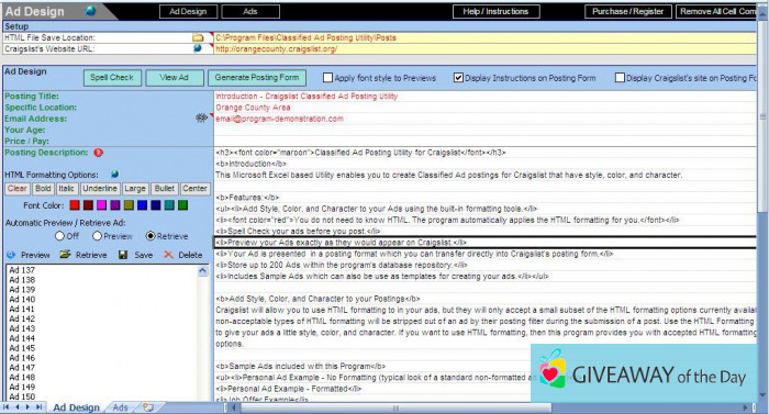 The fact that XLEcom is the creator of this tool is well-known by its users. Craigslist Classified Ad Posting Utility refers to System Utilities, according to its main purpose. The built-in antivirus system shows that the software is virus free.