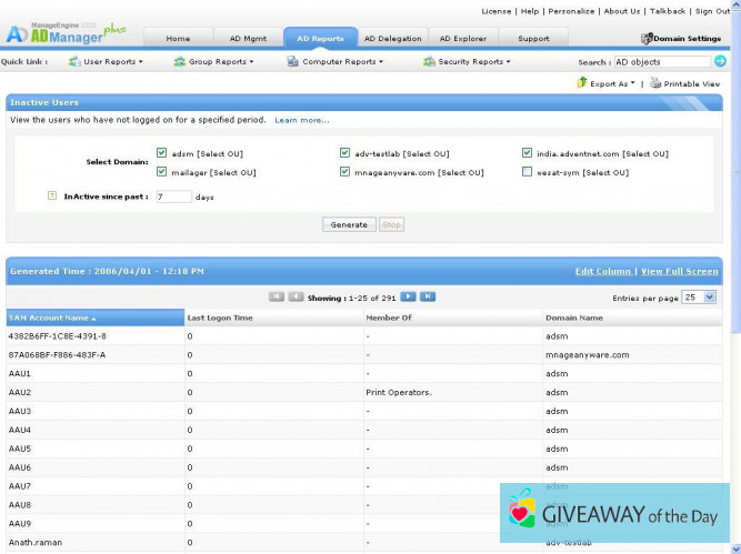 Our software library provides ManageEngine ADManager Plus 6.0 that can be downloaded for free. It refers to System Utilities, according to its main purpose. This program has been checked by our built-in antivirus system, the report shows that it is absolutely safe. The minimum amount of storage to install the file is 253.6 MB. The most popular versions of this program are 6.0 and 5.0. The copyright of this tool belongs to ZOHO Corp.