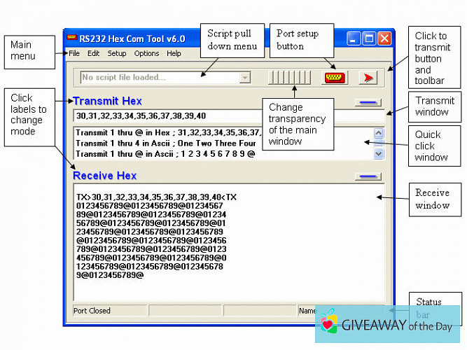 The free RS232 Hex Com Tool 6.01 download is available on our website. The most widespread installation file names of this software are RS232Hex60.exe, RS232Hex.exe, RS232Hex30.exe, RS232Hex40.exe and RS232Hex50.exe etc. This program is designed to work with Windows XP/Vista/7/8 32-bit.