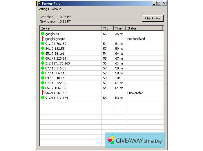 On our software library, you can get a free download of Server Ping 1.01. Please note that this tool is created by BigRecursion Inc. This program is related to System Utilities, according to its main functionality. The most popular and frequently downloaded file of the program is: pinger.exe.
