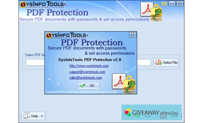 Users leave reviews saying that the major pluses of it are: it is reliable and is efficient. The downloadable file occupies 88.9 MB on your hard drive. The copyright holder of it is SysInfoTools. The most popular and frequently downloaded file of the program is: SysInfoTools PDF Protection v2.0.exe. Our antivirus system always checks the software for spyware. It scanned this program and reported that it is 100% secure.