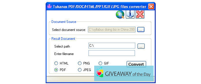 A free version of Tukanas PDF/DOC/HTML/PPT/GIF/JPG files converter 1.0 can be found on our software library. This tool can be also titled as "Tukanas PDFDOCHTMLPPTGIFJPG files converter".