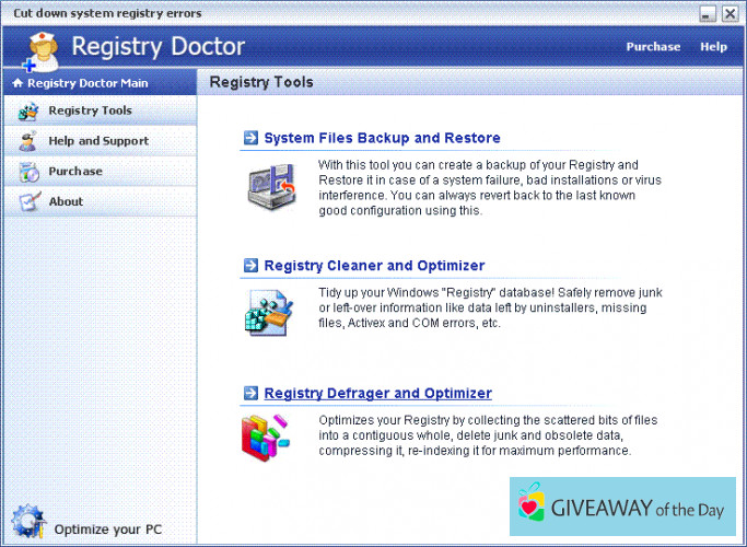 The fact that Optimize Your PC is the developer of Registry Doctor is well-known by its users. According to the system requirements, this tool supports the following OSs: Windows XP/7/8 32-bit. These filenames are among the most common for this software: regdoc.exe and RegDoctor.exe. This software has been scanned by our built-in antivirus system, the report indicates that the software is safe.