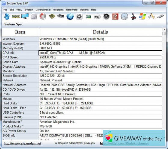Users write reviews pointing out that the advantage of this tool is: this tool is efficient. Our users often look for the installation file for this software with the following name: SysSpec.exe. The downloadable file of the latest software version requires 2.4 MB of free space.