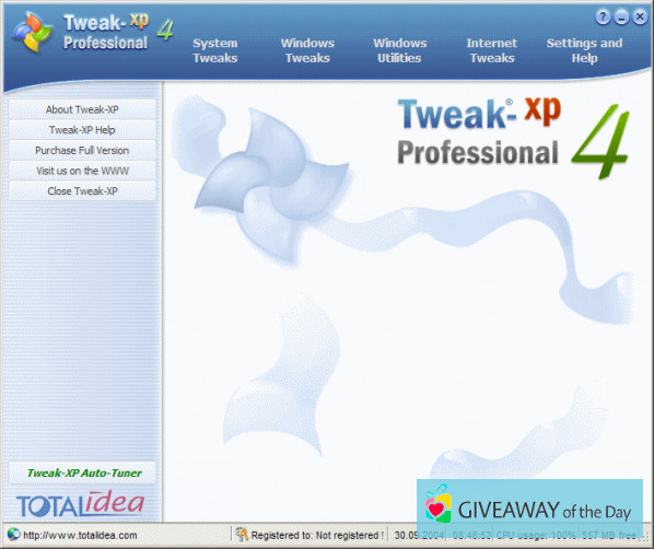 On our software library, you can find a free download of Tweak-XP Pro 4.0.0009. The most popular versions of the software that our community members choose are 4.0, 3.0 and 2.0. Please note that Tweak-XP Pro is created by Totalidea Software New Zealand Ltd.