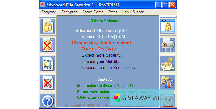 Advanced File Security Pro 3.1.7 is available for free on Download Basket. The most popular version of the tool is 3.1. The fact that Osborn Software is the creator of it is well-known by its users.