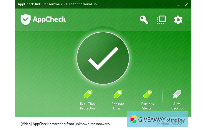 AppCheck Anti-Ransomware 3.1.43.3 is available for free on Download Basket. As users state, the definite pluses of this tool are: this tool has a user-friendly interface and is light on resources.