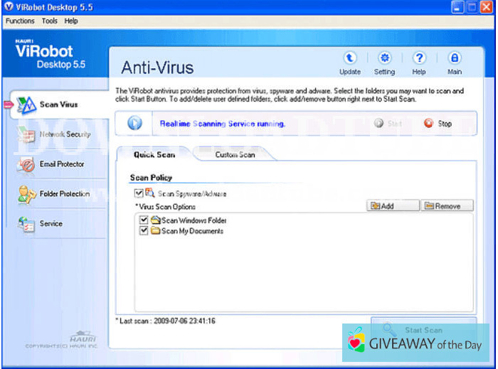ViRobot Desktop 6.10.001 is provided free of charge on our software library. The copyright of this tool belongs to HAURI. According to the information on our software library the most popular versions of this program are: 6.1, 5.5 and 5.0.
