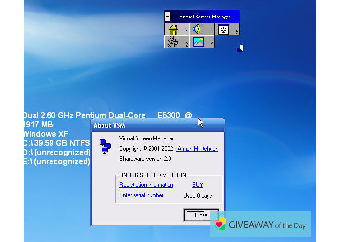 Download free Virtual Screen Manager 2.0 on our software library. The most popular version of the software is 2.0. The built-in antivirus system indicates that this downloadable file is secure. The copyright of it belongs to ArmenM. The most widespread installation file name of this software is VSM.exe. As users mention, the strong sides of Virtual Screen Manager are: it is very easy to use and Virtual Screen Manager is stable.