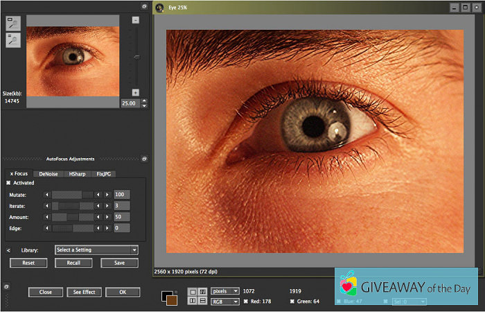 Users leave reviews pointing out that the obvious drawback of AutoFocus is: AutoFocus needs more options. The software has been checked by our built-in antivirus system, the report indicates that the software is secure. The copyright of this program belongs to HumanSoftware. AutoFocus is designed to work with Windows Vista/7/8 32-bit. This tool is categorized as Graphic Design, according to its main purpose.