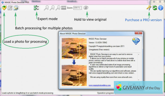 A free version of MAGIC Photo Denoiser 1.0.4254.19942 can be found on our website. The most popular version of this software that our community members download is 1.0. The software is designed to work with Windows XP/Vista/7/8/10 32-bit. The copyright of it belongs to MAGIC Photo Editing.