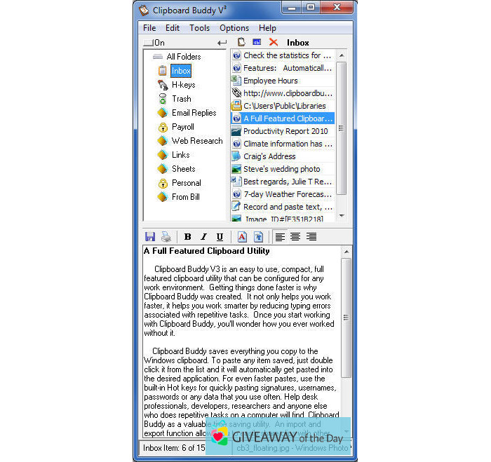 A free version of Clipboard Buddy 3.3.5 can be found on our software library. The most widespread installation file names of this program are CBuddy2.exe, CBuddy3.exe and Clipboard Buddy.exe etc. IQuesoft-Online is the creator of this program.