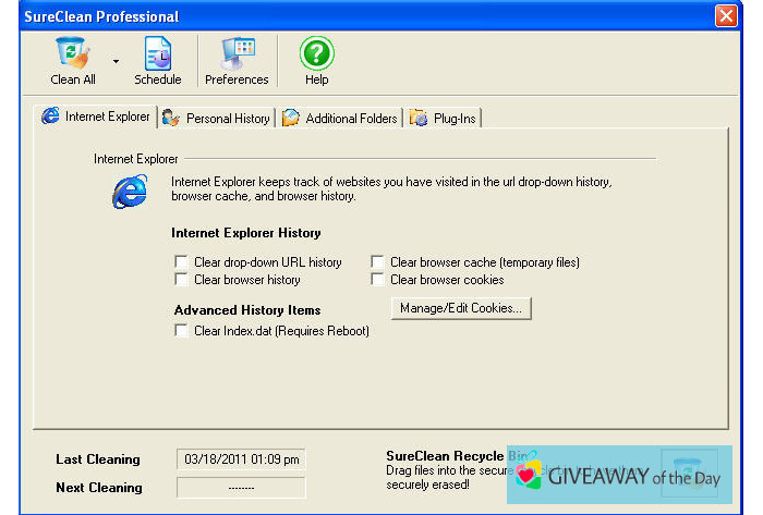 Our website offers SureClean Professional 2.2.1000 that can be downloaded free of charge. The most popular and frequently downloaded file of this tool is: SRClean.exe. It is found among System Utilities, according to its main purpose. Please note that it is created by Panicware, Inc.