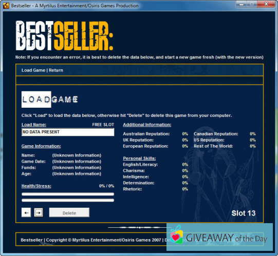 The free Bestseller 1.2 download is provided on our software library. According to the information on our website the most popular version of the game is: 1.2. Our antivirus system always checks the downloadable files for malware. It scanned it and reported that it is clean to use. The copyright of it belongs to Myrtilus EntertainmentOsiris Games. The most widespread installation file name of the game is Bestseller.exe. You can find it in the Games category on our website.