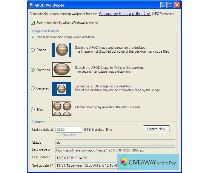 The free APOD 1.2.7 download is available on our software library. This tool is designed to work with Windows XP/7 32-bit. The most widespread installation file names of the software are apod.exe and cbsidlm-tr1_6-APOD_Wallpaper-10976816.exe etc.