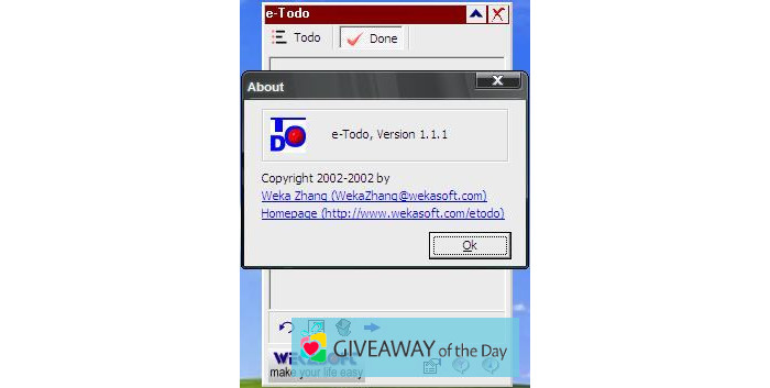 On our website, you can find a free download of e-Todo 1.1.1. Users write reviews stating that this program possesses these benefits: this program works like a charm and works well. Wekasoft is the developer of the software.