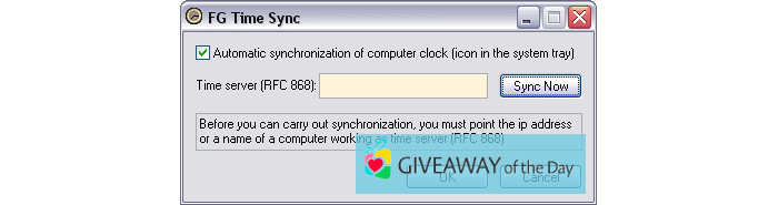 On our software library, you can get a free download of FG Time Sync 1.0.0.4. The software is designed to work with Windows XP/XP Professional/Vista/7/8/10 32-bit. Our antivirus system always scans the software for malware. It scanned FG Time Sync and reported that it is virus free.
