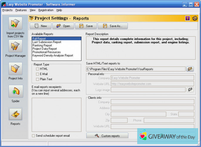 Download free Easy Website Promoter 8.0.0.4 on our website. Some users think that Easy Website Promoter possesses such an advantage as Easy Website Promoter provides quick download. You can find this program in the Developer Tools category on our website.
