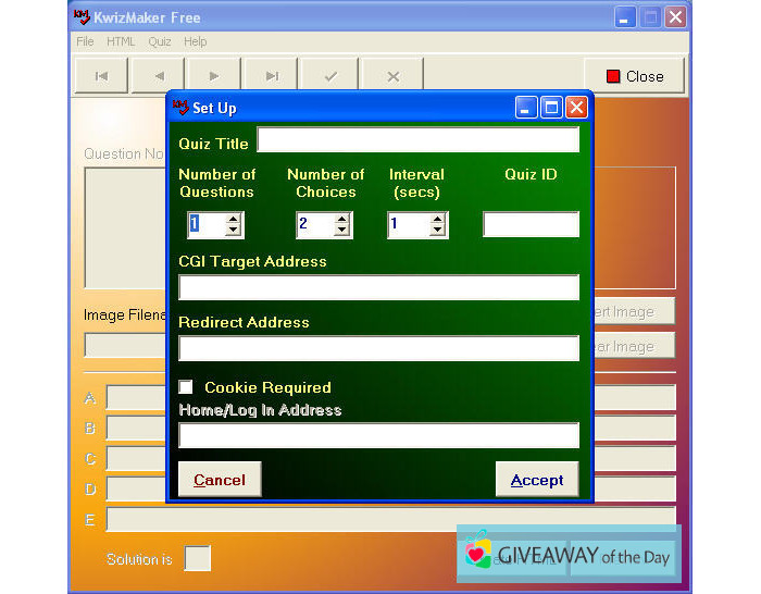 The free Kwizmaker 1.1 download is provided on our website. This software has been scanned by our built-in antivirus system, the report displays that the software is virus free. The most popular version of the program is 1.1.
