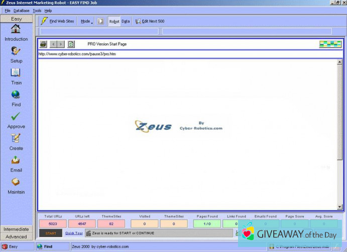 Our website offers Zeus Internet Marketing Robot 4.2.72.3 that can be downloaded free of charge. Please note that this program is created by Cyber-Robotics, Inc. The software can be installed on Windows XP/7/8/10 32-bit.